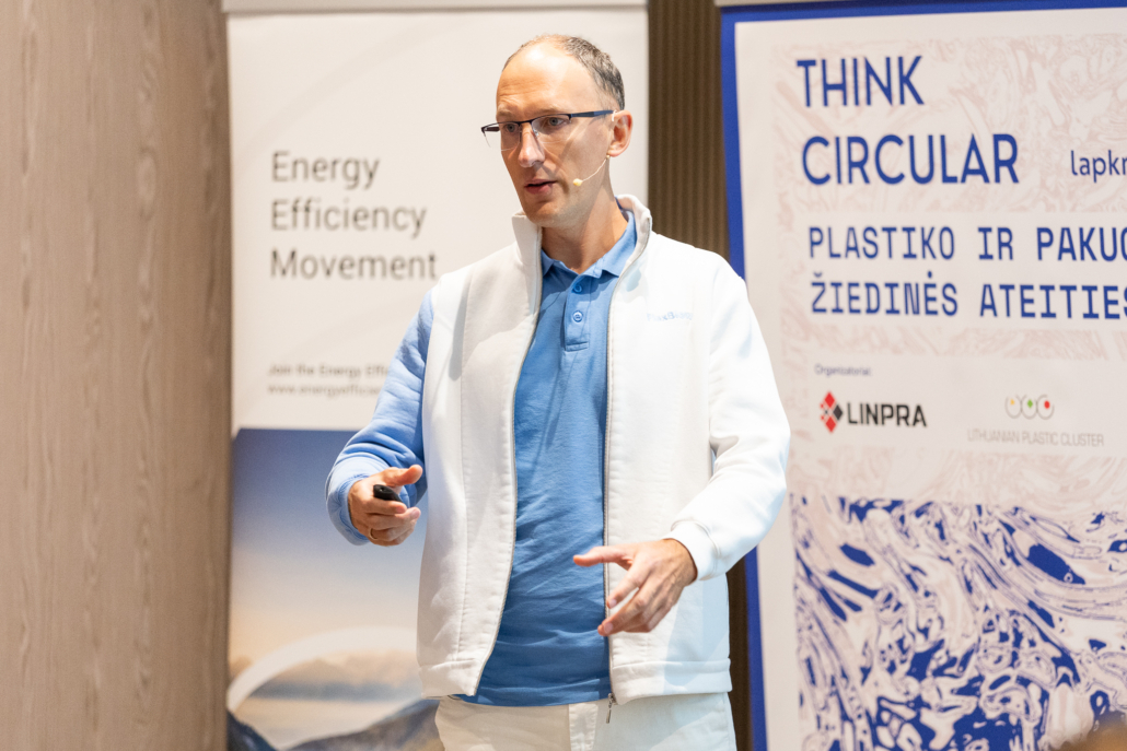 The event was enriched by numerous expert insights and practical examples. Sanna-Mari Kaakinen presented ABB’s experience in implementing “Zero Waste to Landfill” principles, Greta Česnaitytė reviewed the impact of the PPWR regulation on Lithuania’s packaging system, and Audrius Jasėnas discussed the financial and tax challenges that companies will face starting in 2026. FlexBlow CEO Gintautas Maksvytis also delivered an informative presentation, introducing advanced manufacturing and sustainability integration solutions. During the panel discussion, members of the Lithuanian Plastics Cluster – including Dovydas Stulpinas (Doloop), Marius Maslauskas (UAB Plastara) and others – shared their insights.